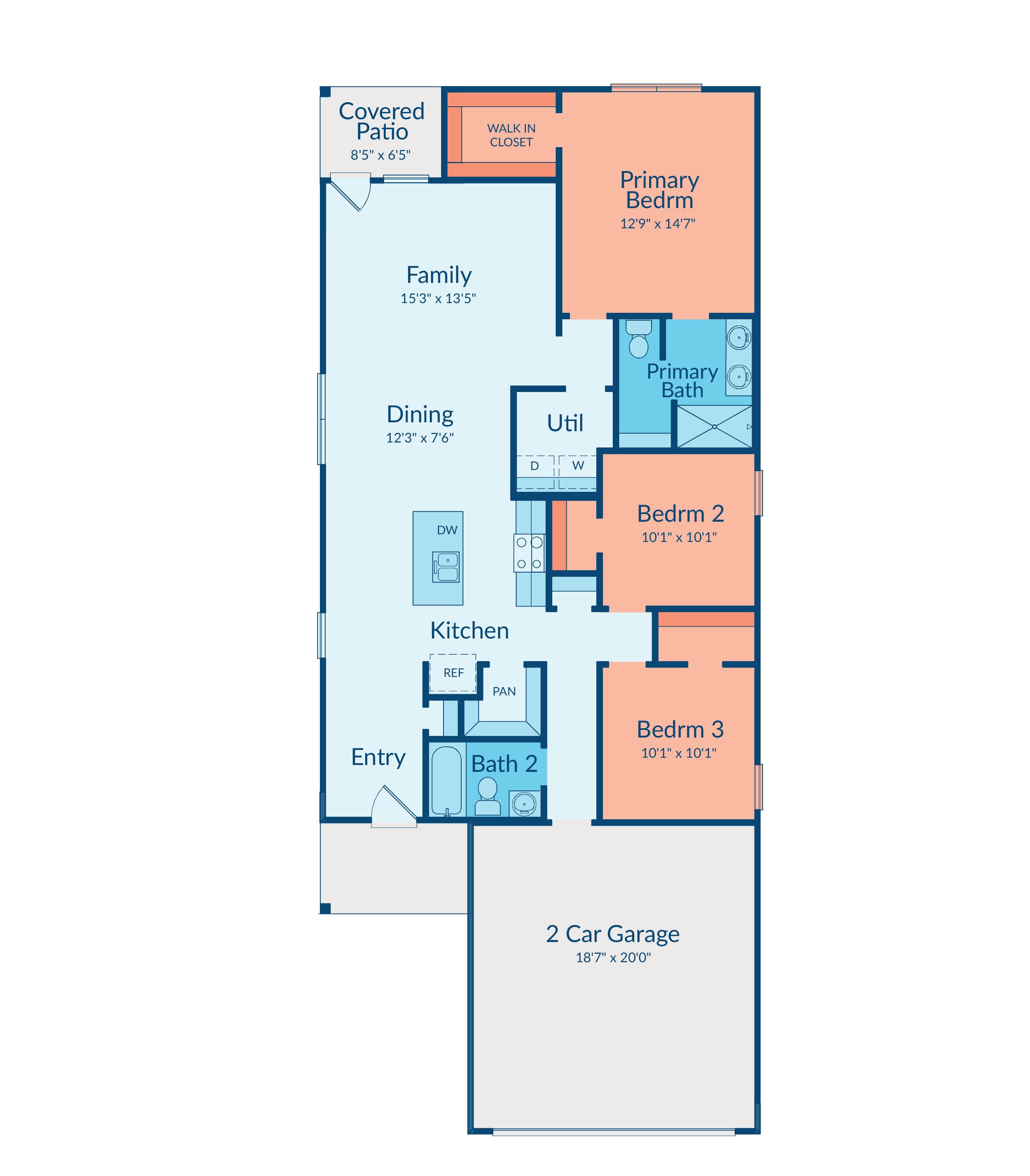 Sight lines extend from the front door to the back windows, enhancing the sense of space throughout the home. The kitchen sits at the heart of the layout and includes a walk-in pantry and center island that keep you connected while cooking.