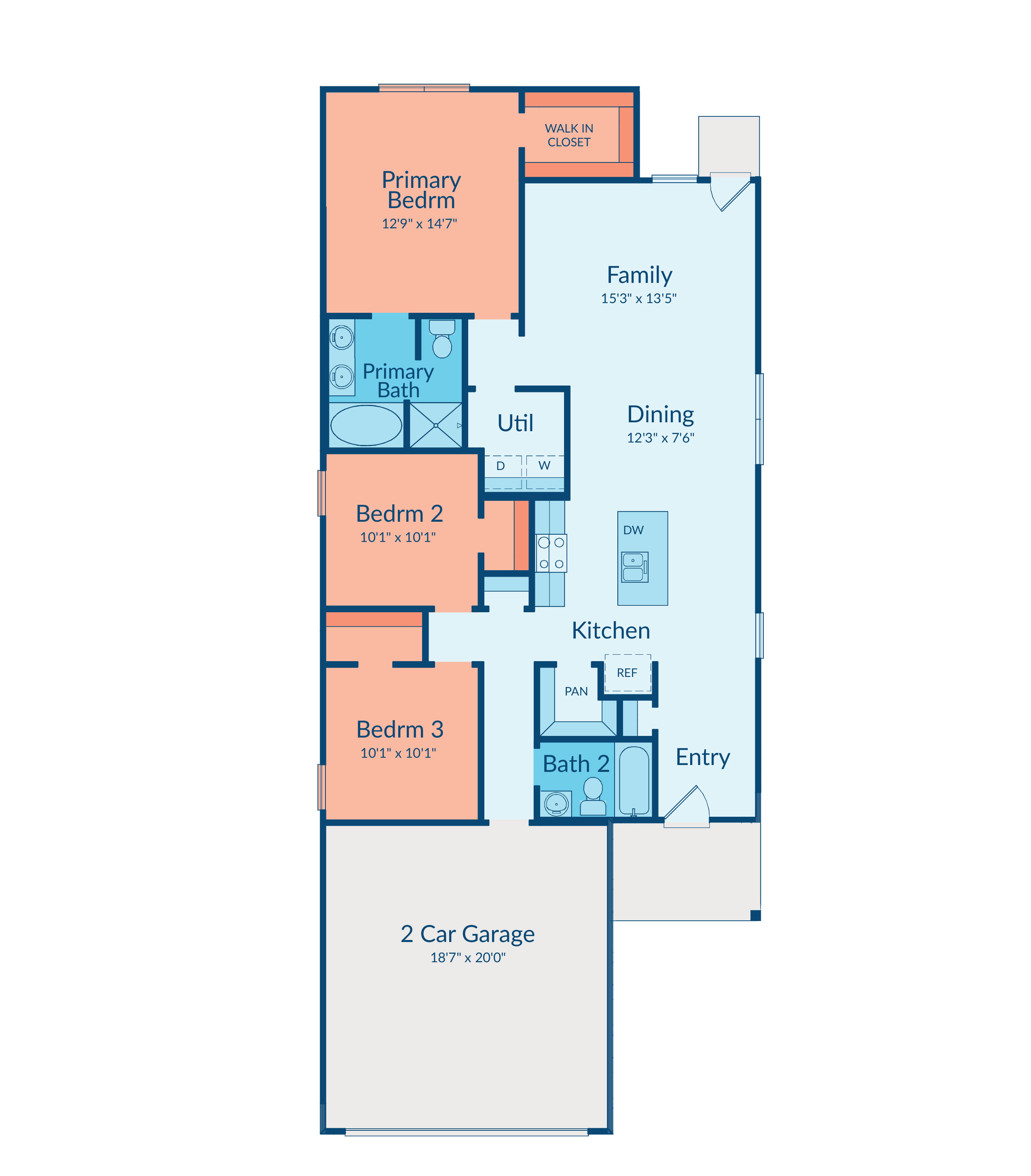 Sight lines extend from the front door to the back windows, creating a bright and open feel throughout the main living areas. The kitchen sits at the heart of the home and features a walk-in pantry and center island that make everyday living and entertaining easy.