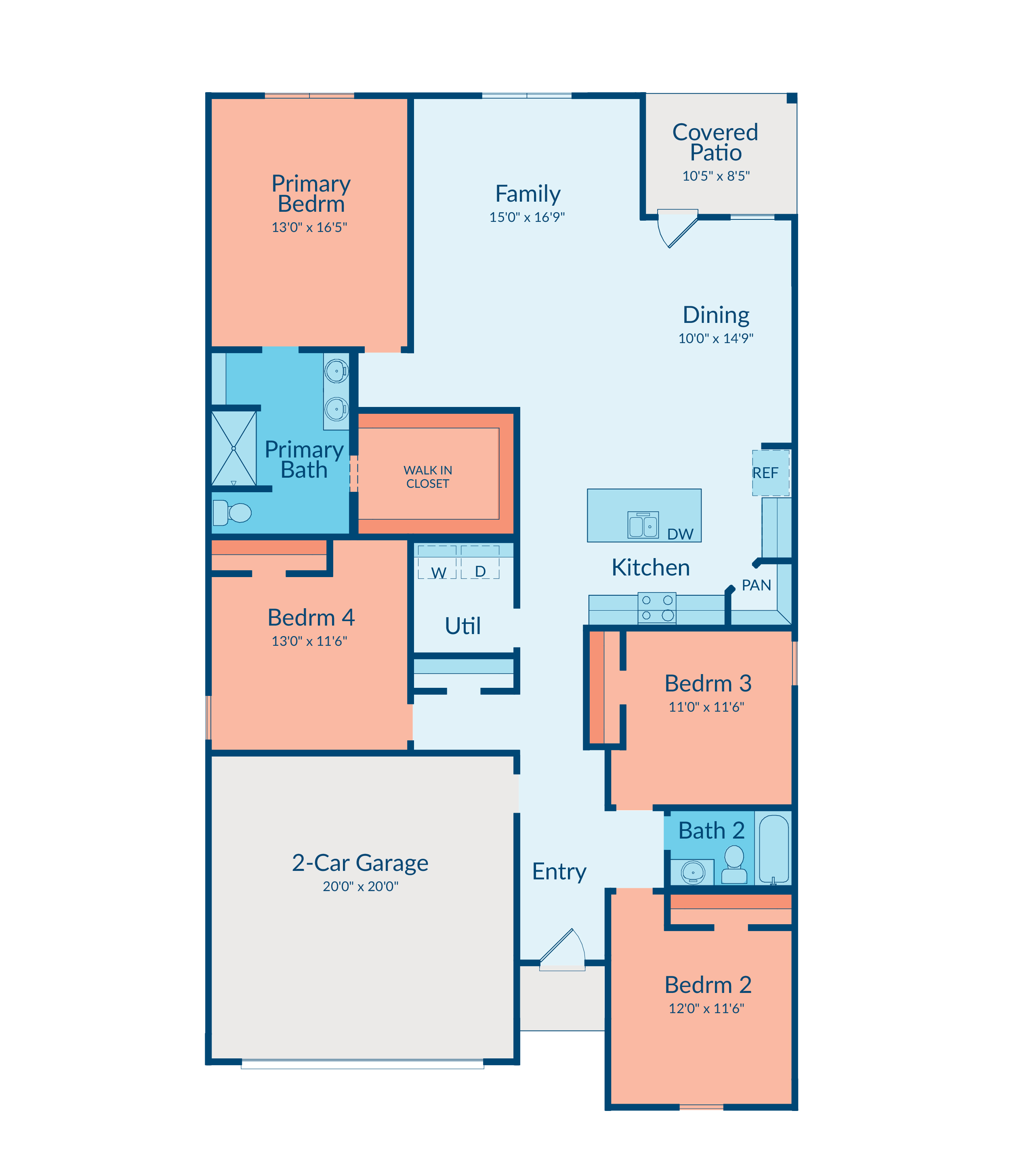 Sight lines extend from the front door to the back windows, creating an airy and welcoming feel. The open kitchen features an island and corner pantry that make daily living easy and enjoyable.