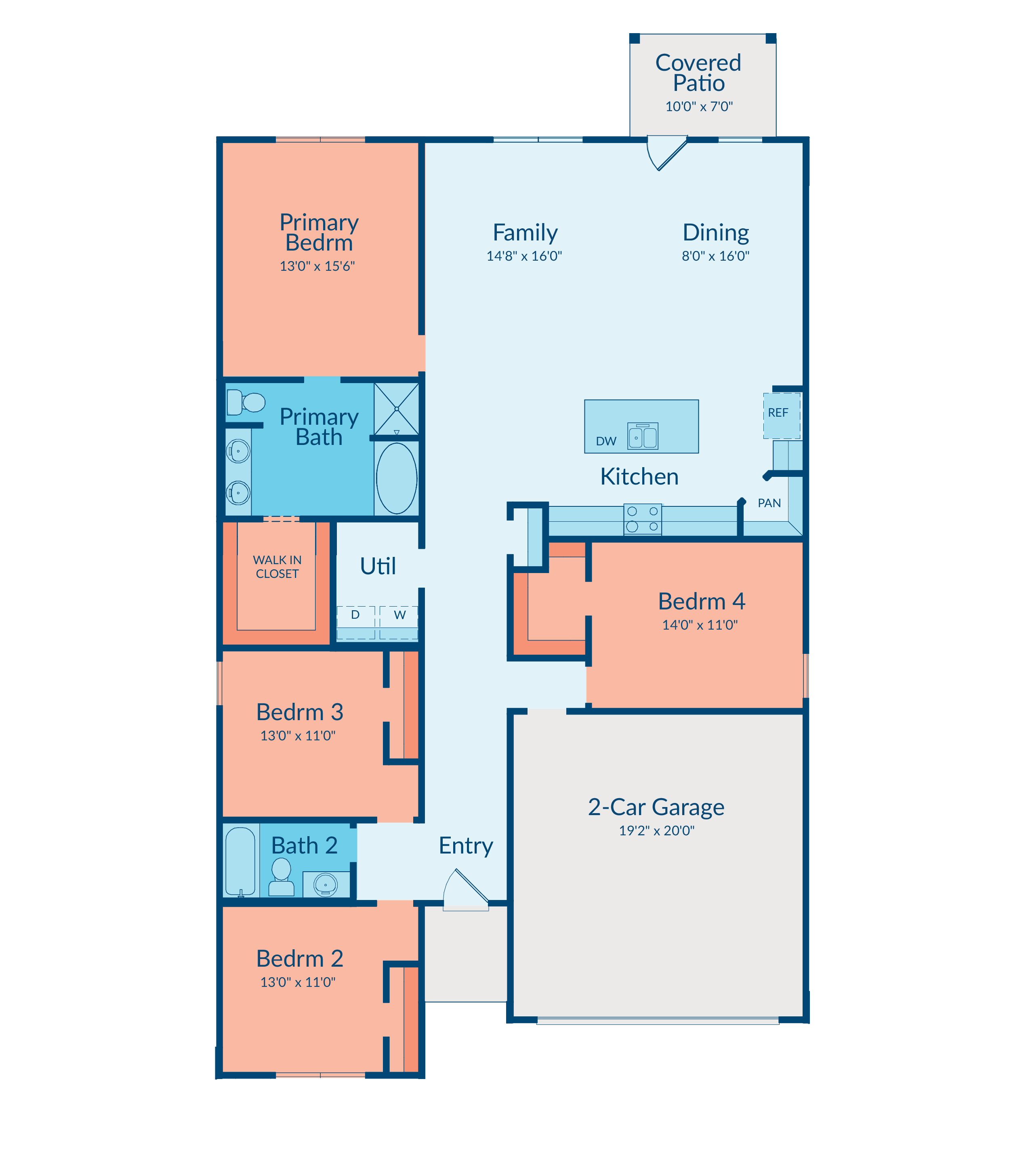 Three guest rooms with no shared walls ensure personal space for everyone, while Bedroom 4 includes a walk-in closet for extra convenience. A covered patio offers the perfect setting for outdoor living.