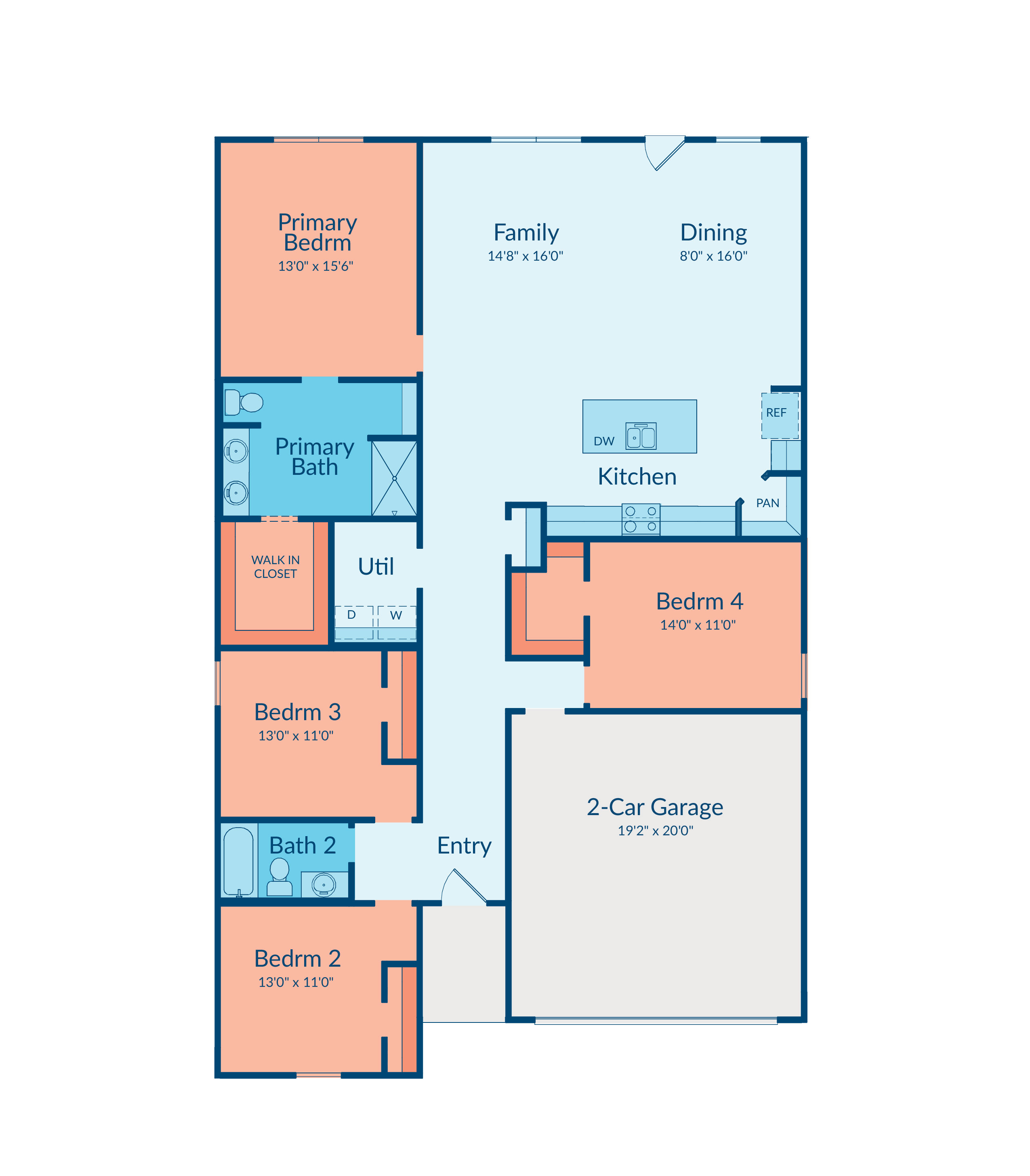 The open kitchen includes an island and corner pantry designed for everyday convenience. The primary bedroom features an en suite bath and walk-in closet for comfort and privacy.