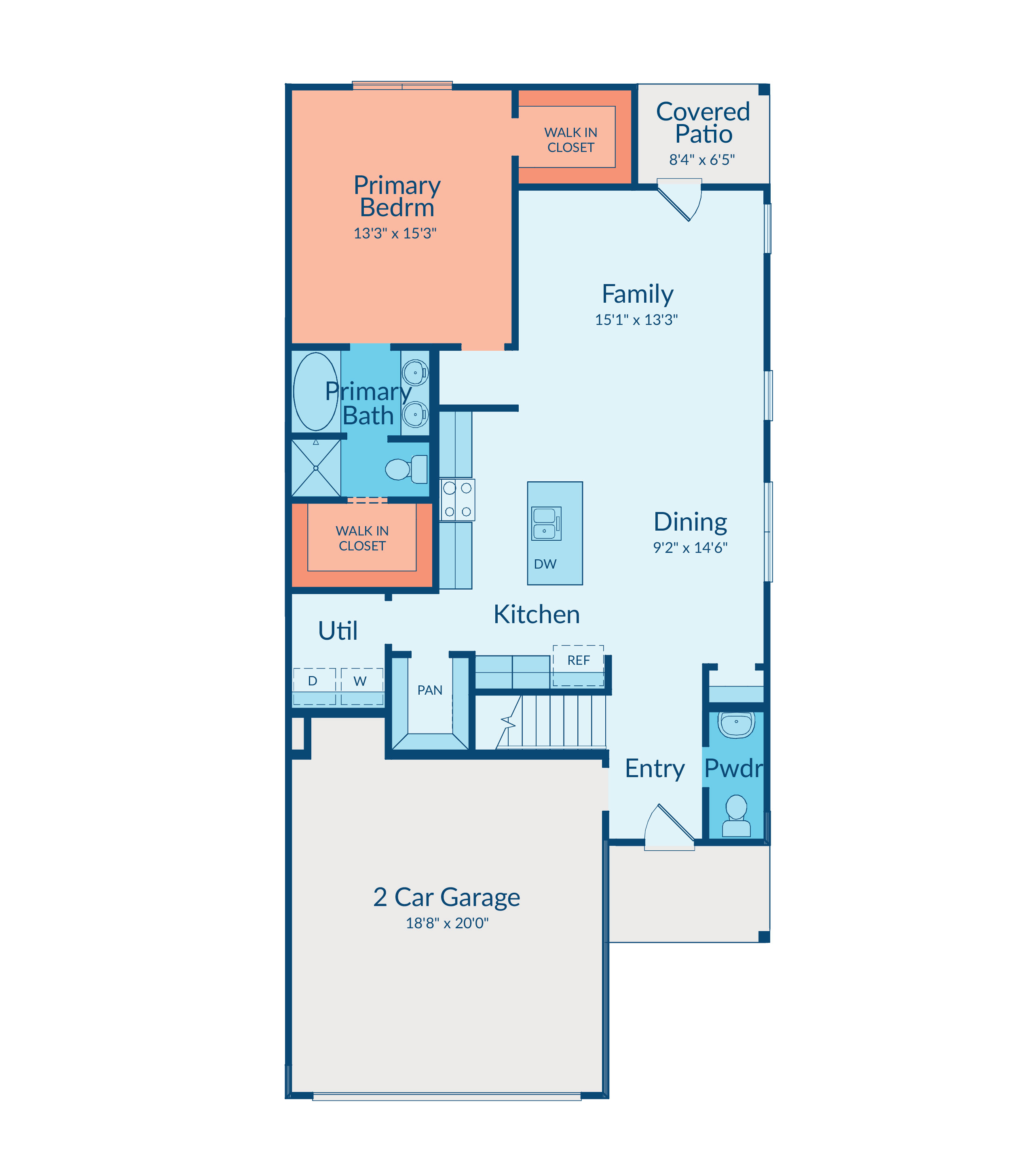 This two-story layout offers first-floor living spaces ideal for gathering. The private primary bedroom on the main level includes a walk-in closet and en suite bath.